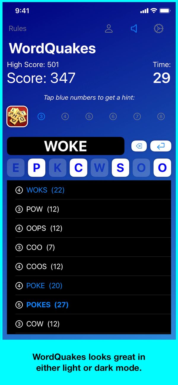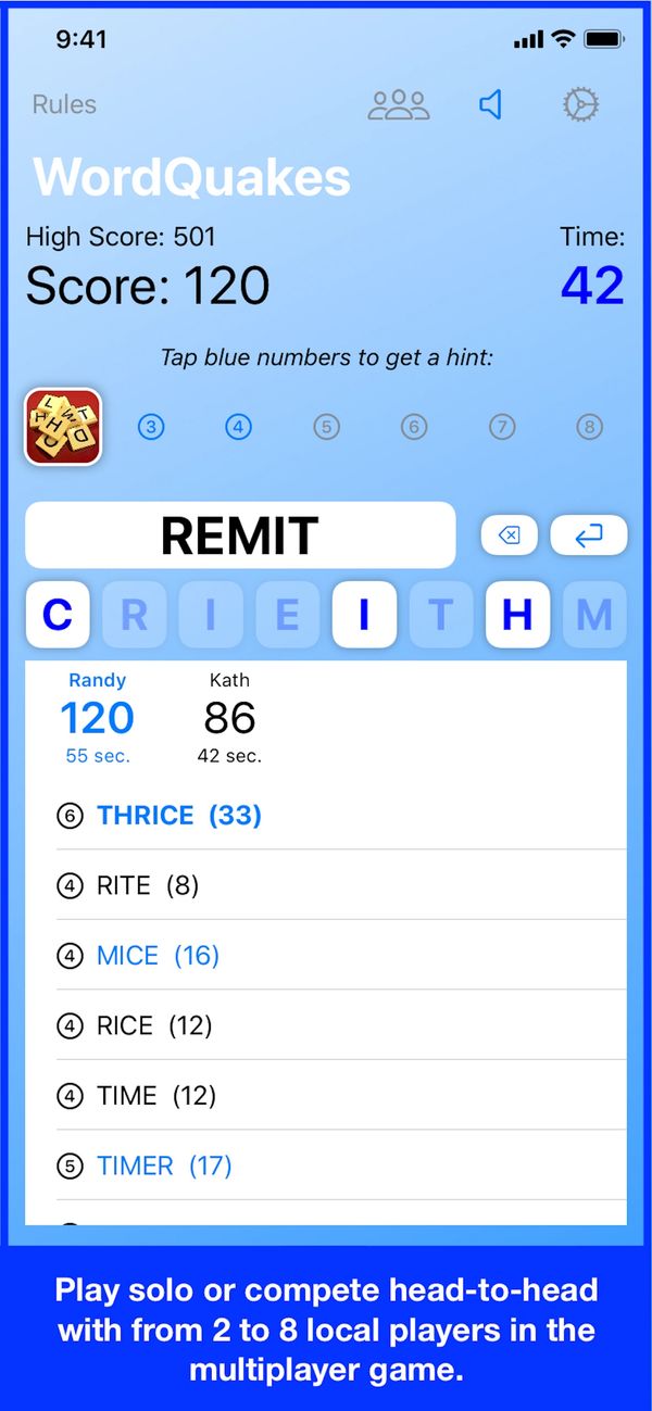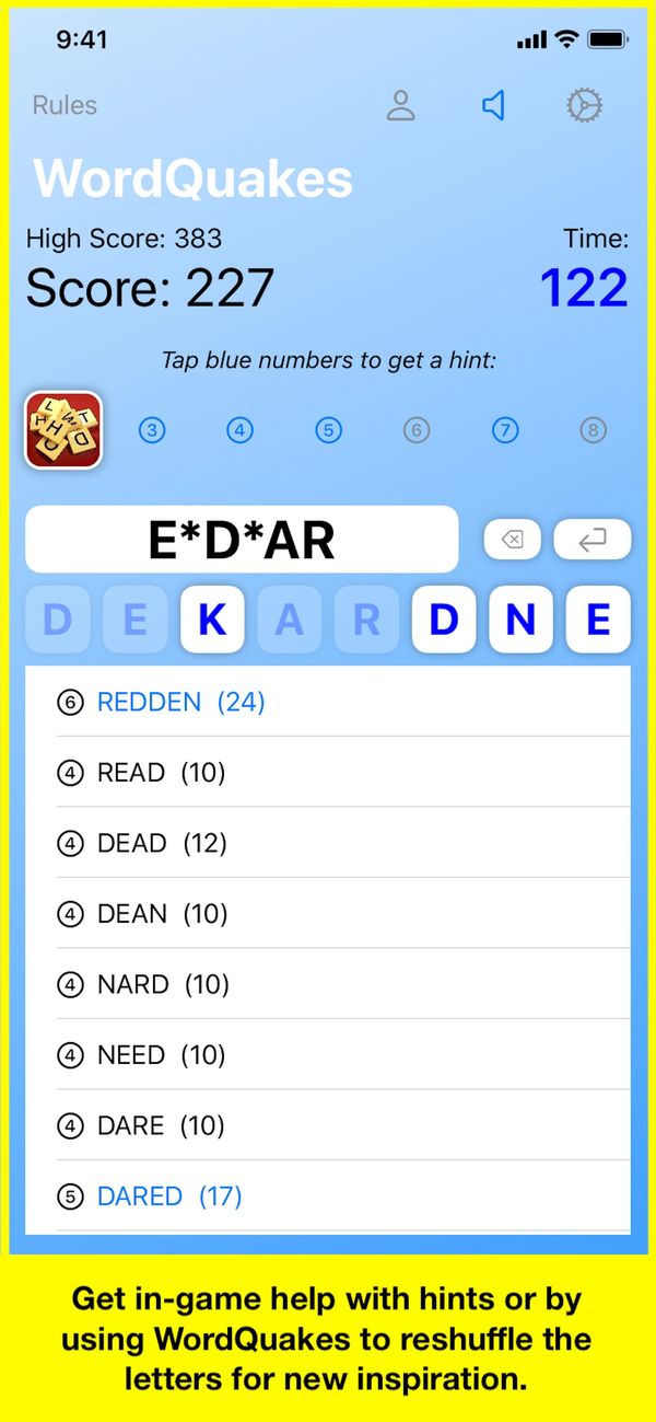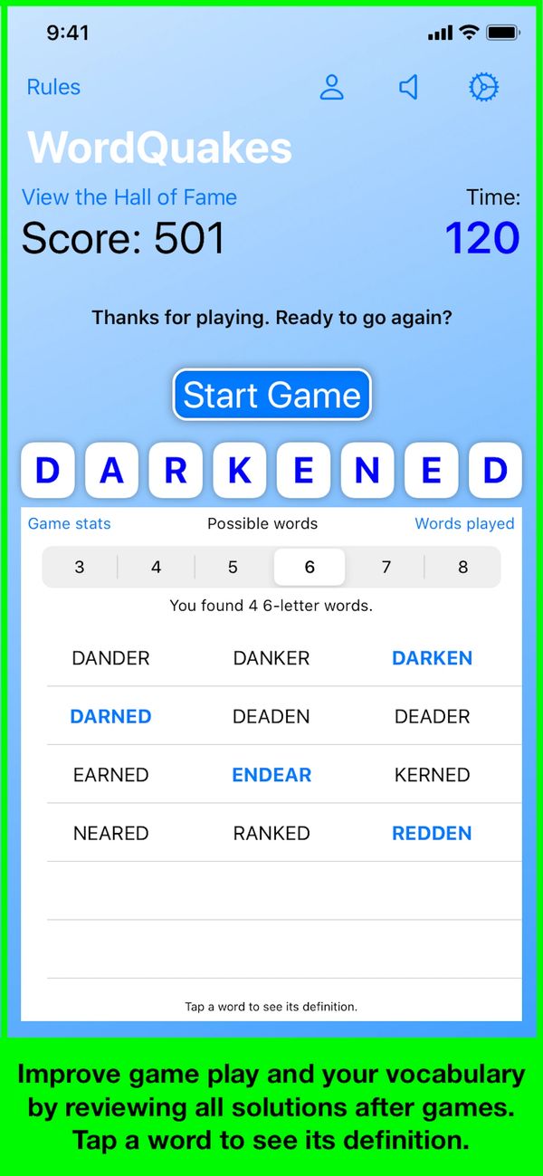WordQuakes is a fun and educational anagram word puzzle for one or more players that will keep you coming back again and again.